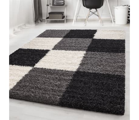 120x170 Cm Shaggy Hochflor Teppich Grau Weiss Karo Melierung My171
