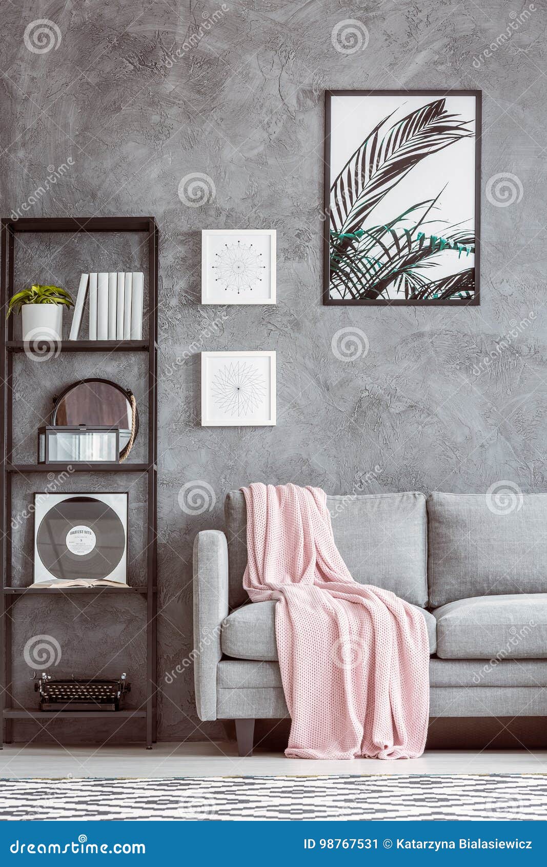 Graues Sofa Mit Rosa Bettdecke Stockbild Bild Von Grau