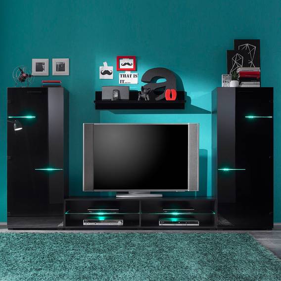 Wohnwand Schwarz Mit Beleuchtung Online Kaufen