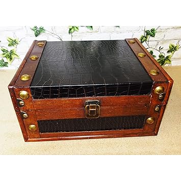 Truhe Schatztruhe Nahkastchen Aus Holz Mit Metall Und Kunstlederappl