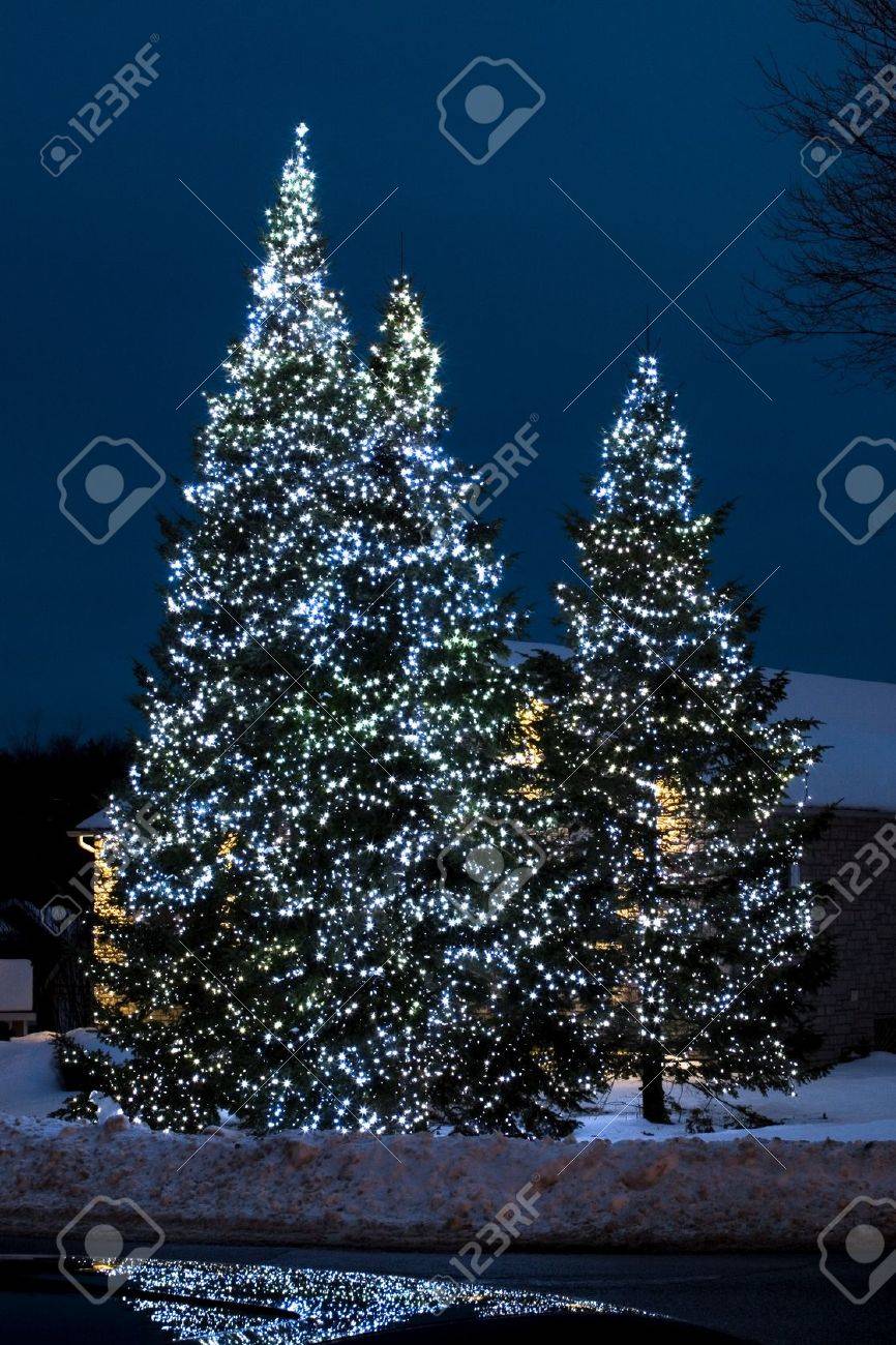Weihnachtsbeleuchtung Auf Aussen Baumen Lizenzfreie Fotos Bilder