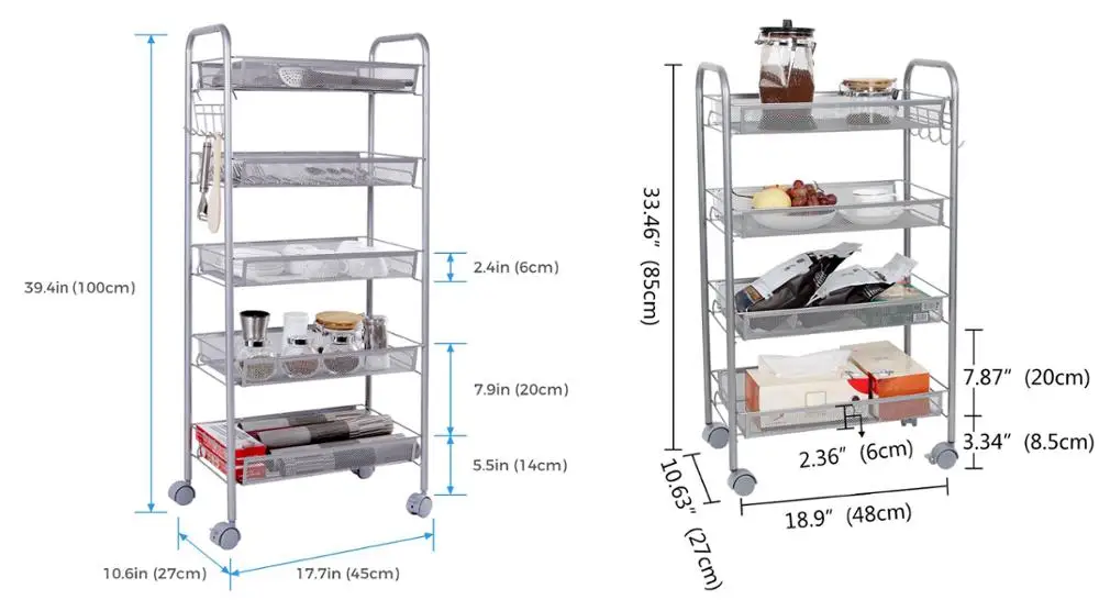Multi Tiers Home Kuche Beweglichen Rollgitterbehalter Metall Regal