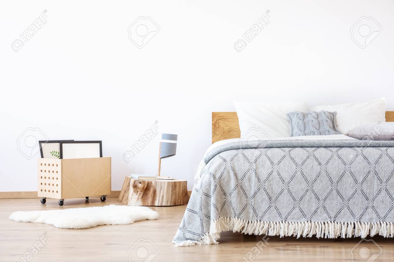 Designerlampe Auf Holzstumpf Und Weisser Teppich Im Schlichten